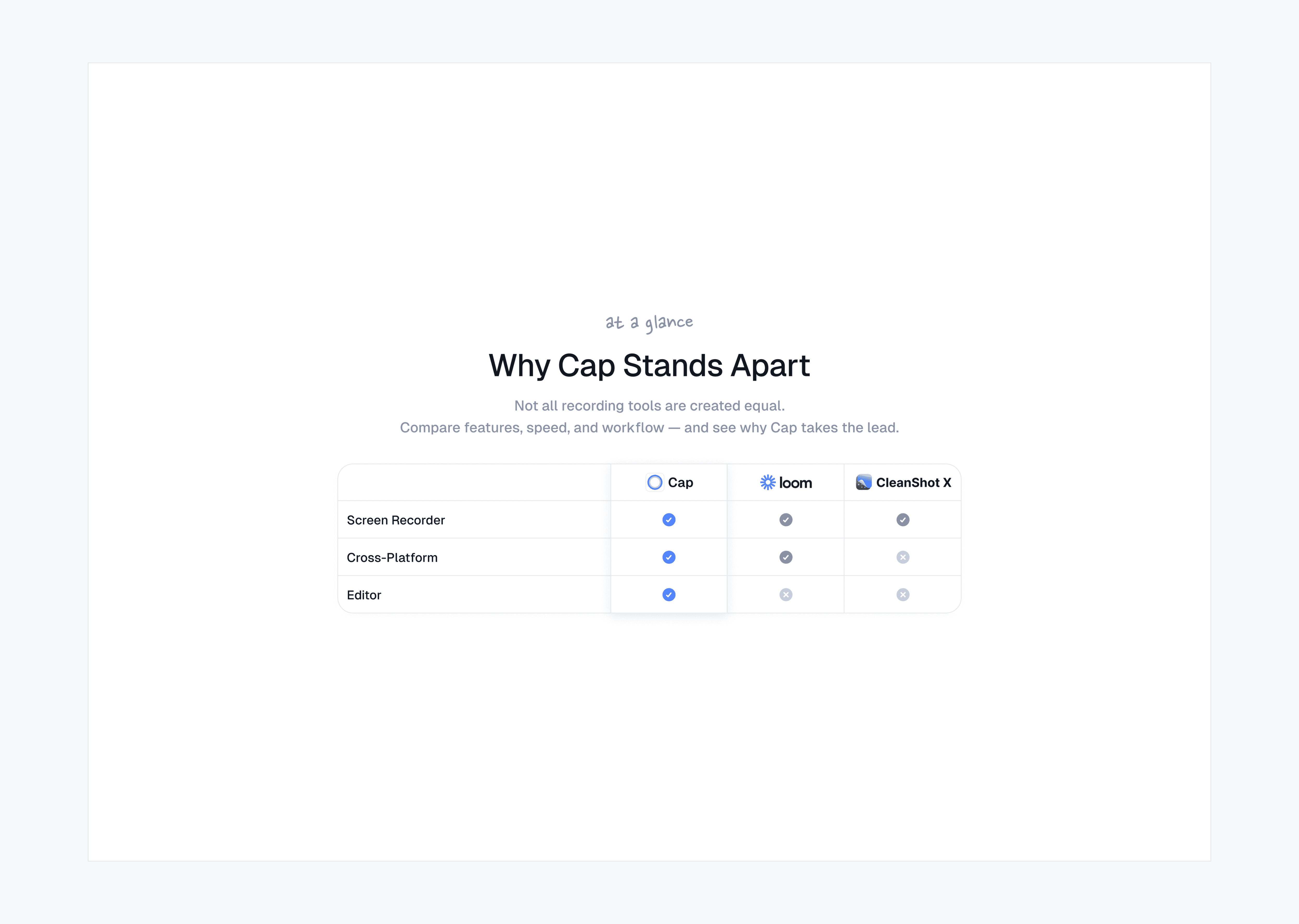 We crafted Cap zero-to-one — an open-source Loom and CleanShot alternative for capturing, recording, and sharing your screen.